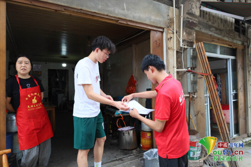 图为实践团成员正在对郎溪县居民进行问卷调查。中国青年网通讯员 董子康 摄