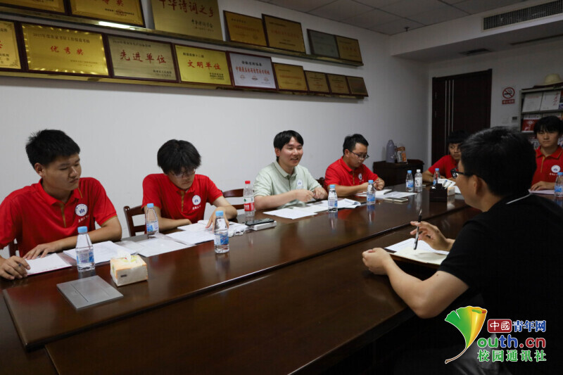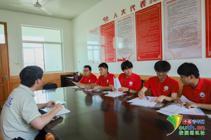 图为实践团指导老师与队员们研讨调查问卷的问题设计与发放方式。中国青年网通讯员 董子康 摄